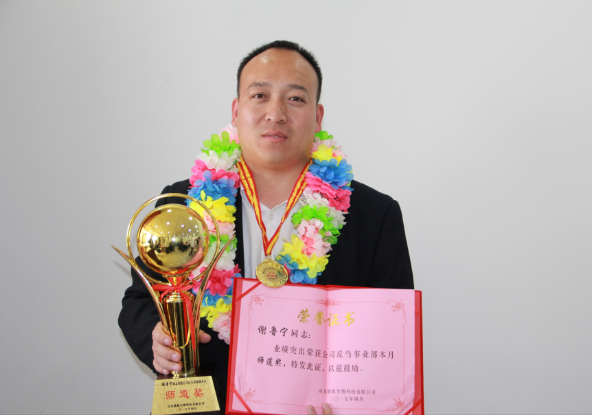 2019-4-9 熱烈祝賀銷售部大區(qū)經(jīng)理謝魯寧喜獲“金三月師道獎”