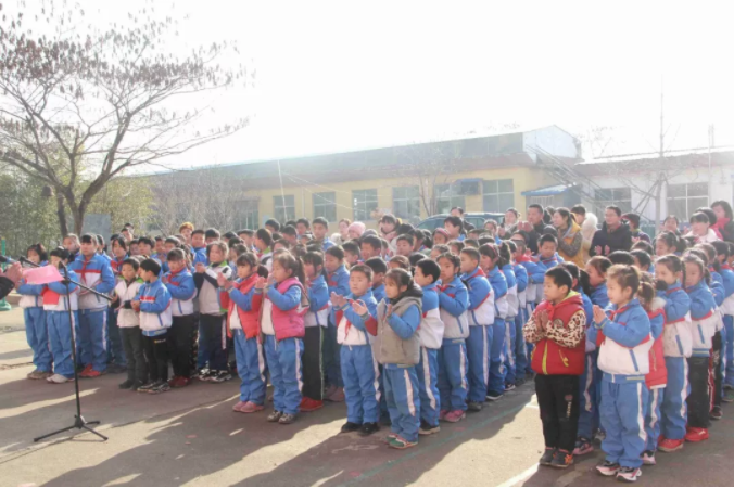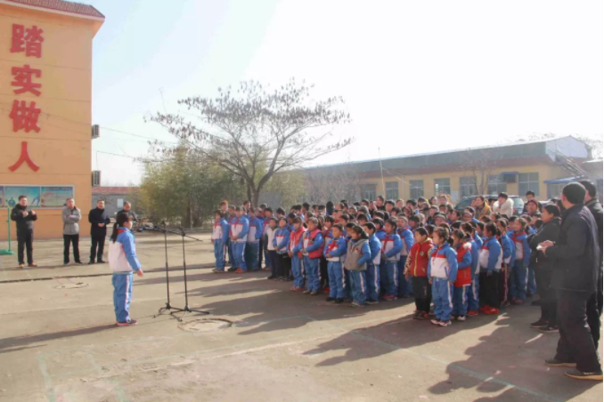 11時(shí)整,全校老師和同學(xué)們相聚在學(xué)校操場,愛心捐贈活動正式開始,出席本次捐贈活動的有:九三學(xué)社的劉彥濤秘書長、侯家華主委、泰安市化馬灣鎮(zhèn)教委彭主任與健源生物董事長王誠先生、總經(jīng)理助理兼辦公室主任王玲女士。學(xué)校張校長對九三學(xué)社與山東健源生物科技有限公司的捐贈表示感謝,感謝九三學(xué)社以及社會各界對學(xué)校教育的關(guān)注和支持,感謝在寒冬里送來溫暖和祝福。并告誡全校師生要懂得感恩,將這份愛心傳遞下去。