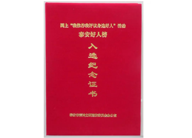 一、王誠董事長光榮入選五月“泰安好人榜”——由泰安市精神文明建設委員會頒發