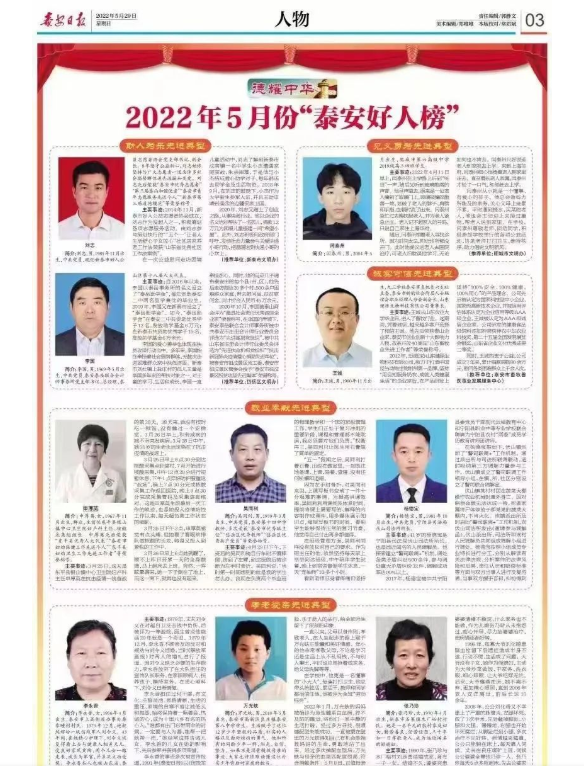 《泰安日報》發布2022年5月份“泰安好人榜”