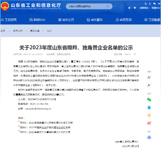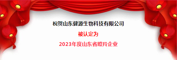 2023年7月10日,山東省工信廳公示了2023年度山東省瞪羚企業名單,山東健源生物科技有限公司被認定為2023年度山東省瞪羚企業。