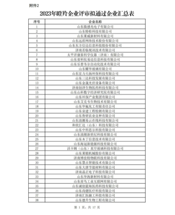 山東健源生物被認定為2023年度山東省瞪羚企業