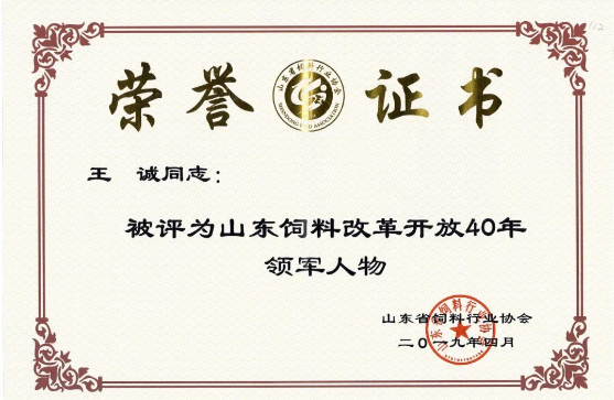 山東健源生物董事長王誠榮獲山東飼料改革開放40年領軍人物