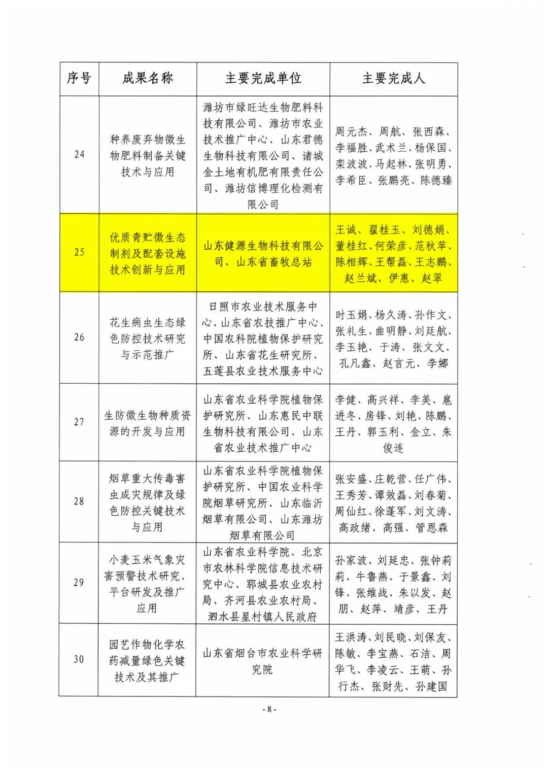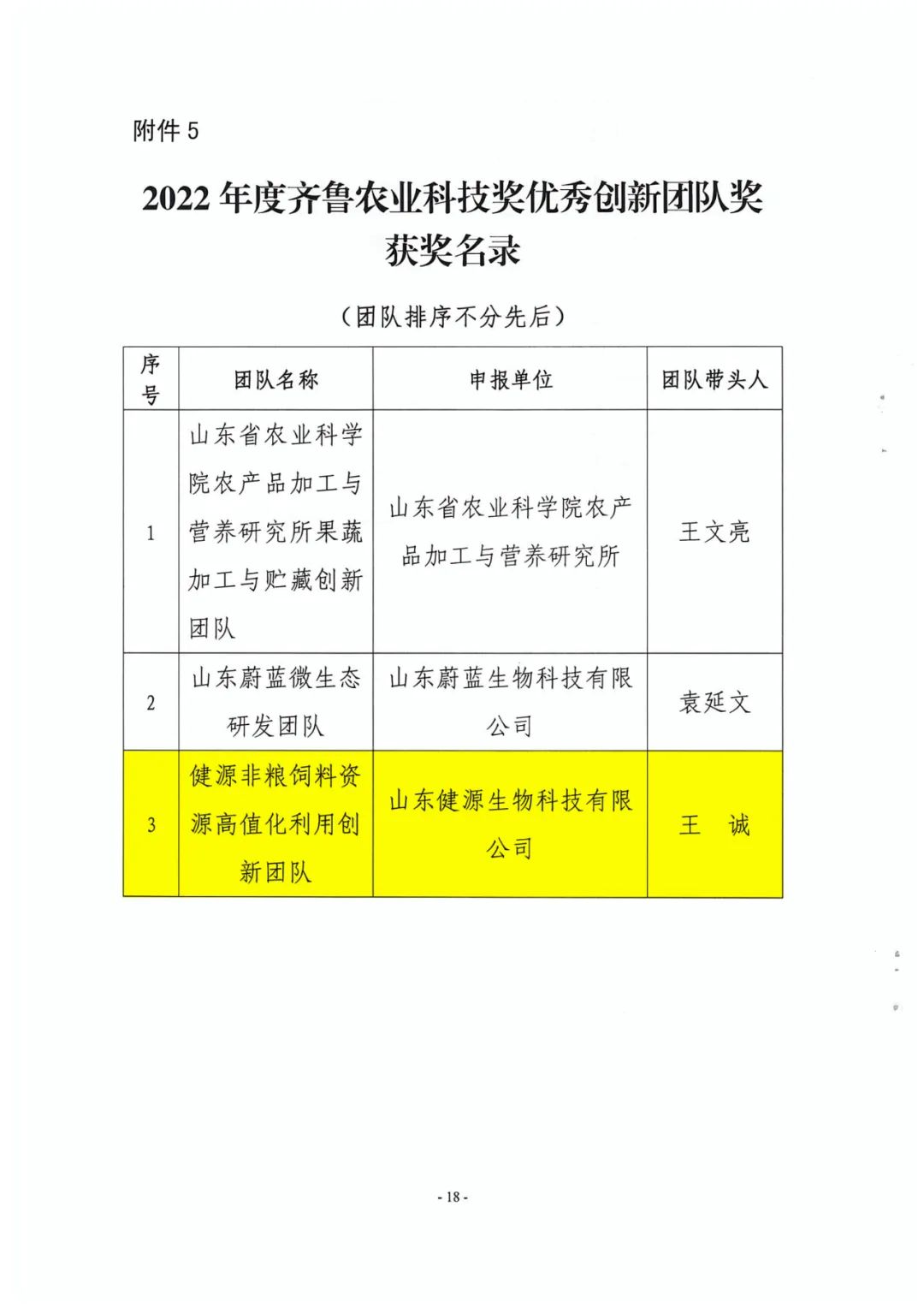 附:關(guān)于2022年度齊魯農(nóng)業(yè)科技獎的表彰決定及健源獲獎名錄