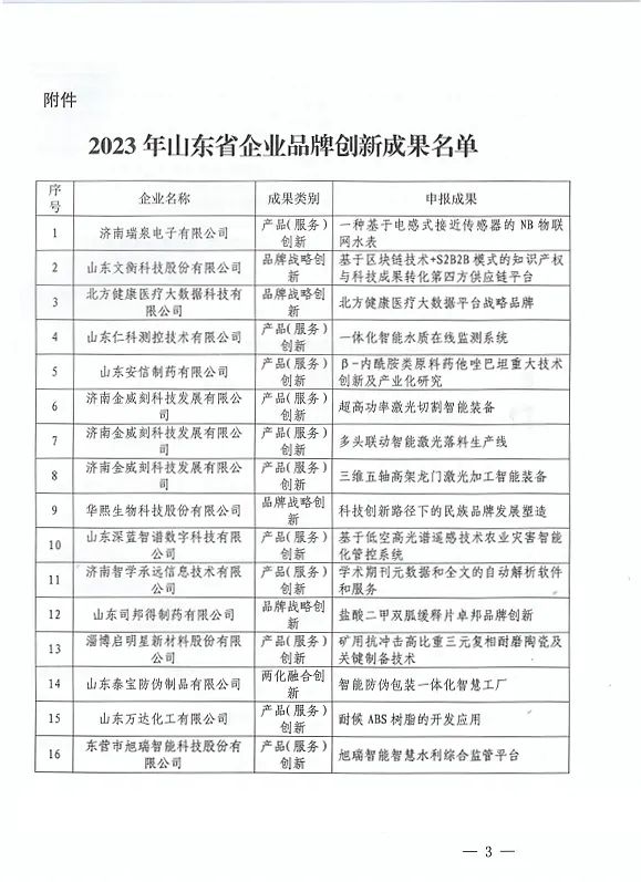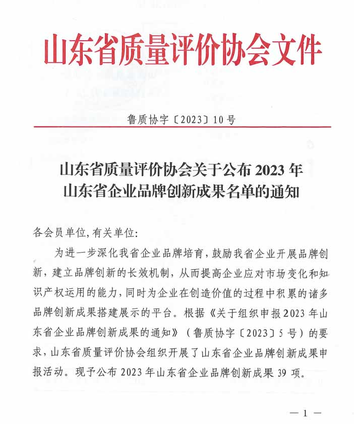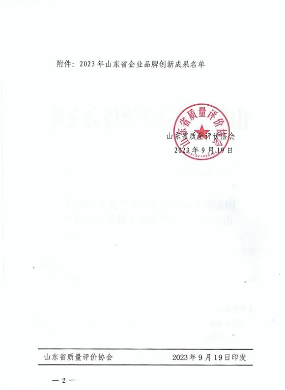 附:《山東省質(zhì)量評價協(xié)會關于公布2023年山東省企業(yè)品牌創(chuàng)新成果名單的通知》