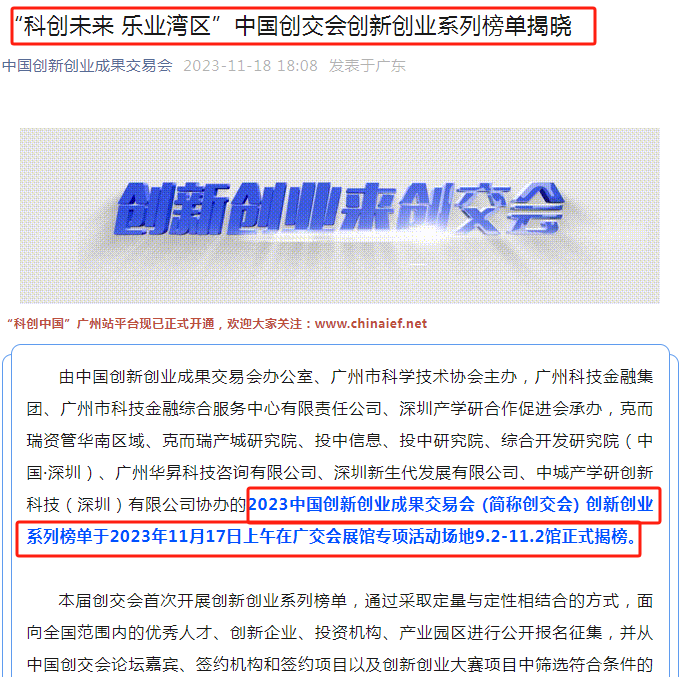 為進一步推動科技成果轉化落地,本屆創交會首次發布了“先鋒人才榜”“創新企業榜”“創投機構榜”“產業園區榜”等系列榜單,共有40個企業(機構)和人才入選榜單。榜單在廣泛征集的基礎上,通過遴選和評審產生,匯聚優質、標桿的創新要素,推動創新鏈、產業鏈、資金鏈、人才鏈“四鏈”深度融合,為企業開展創新創業、促進科技成果轉化提供有力支撐。