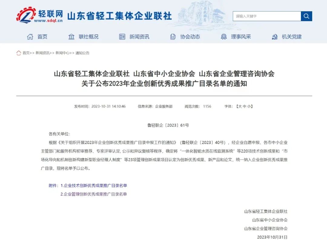 近日,山東省輕工集體企業聯社公布了《2023年企業創新優秀成果推廣目錄名單》。山東健源生物科技有限公司的“復合型企業文化建設為科技創新提供精神動力”榮獲管理創新優秀成果證書,并成功入選了山東省企業創新成果推廣目錄。