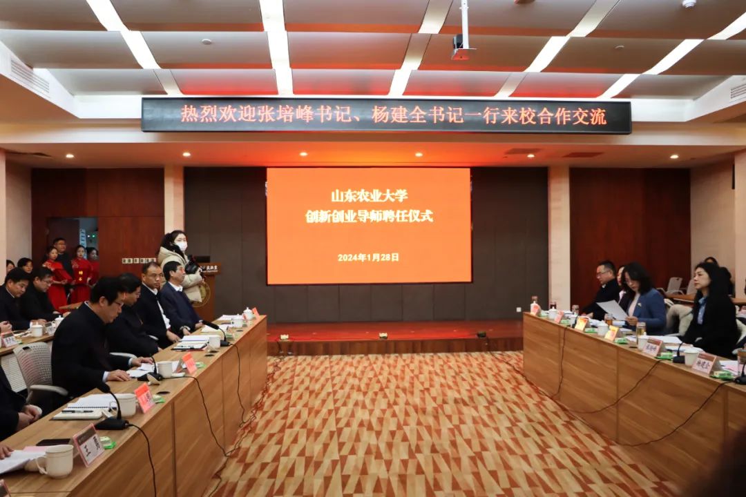 董事長王誠(左一)上臺接受山東農業大學創新創業導師聘書