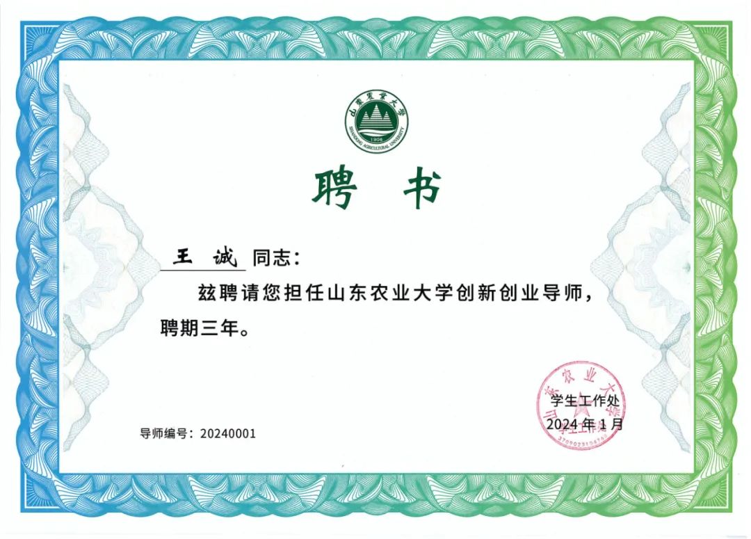 董事長王誠被聘為山東農業大學創新創業導師