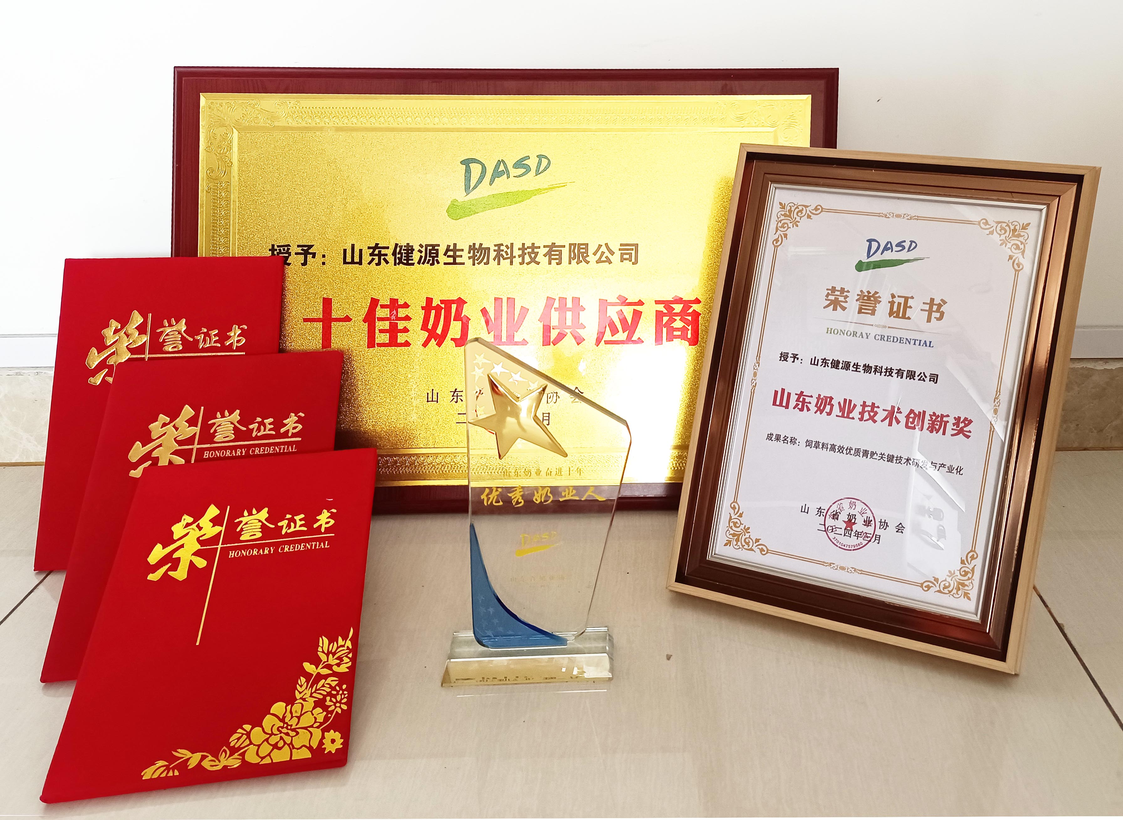 3月22日-24日,由山東省奶業協會主辦的第七屆山東現代奶業大會暨第十屆山東粗飼料大會在東營召開。會上,來自山東各地的行業主管部門領導、奶業專家、飼草飼料專家與諸多企業家代表300多人齊聚一堂,以“認清形勢、開拓思路、團結奮進、創新發展”為主題,聚焦當前山東奶業發展面臨的困難和挑戰,積極探索提高奶牛養殖生產效益,提升乳制品消費水平、助力奶業健康可持續發展的創新之路。山東健源生物科技有限公司受邀參加并榮獲多項榮譽。