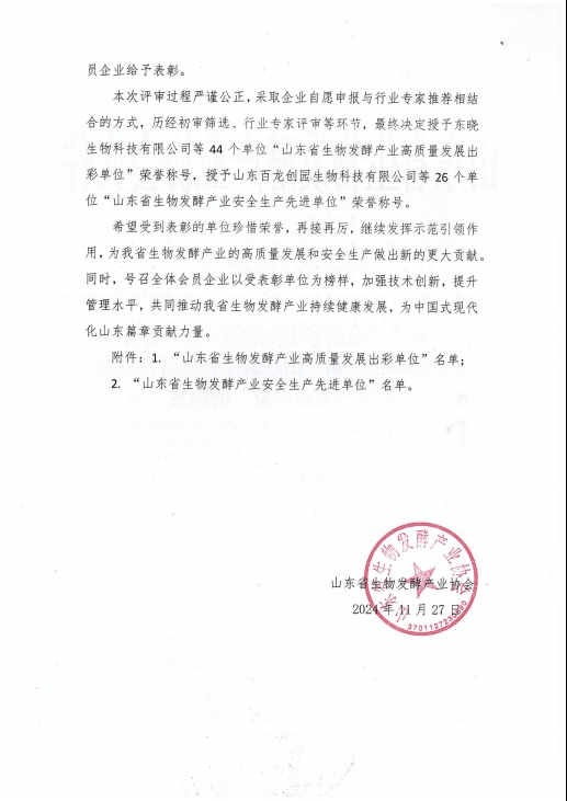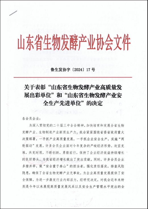 本次評審過程采取企業自愿申報與行業專家推薦相結合的方式,歷經初審篩選、行業專家評審等環節,最終評選出44家山東省生物發酵產業高質量發展出彩單位,26家山東省生物發酵產業安全生產先進單位。