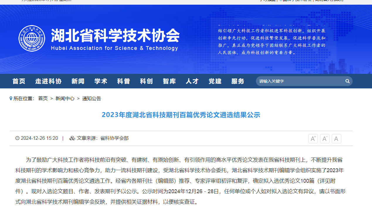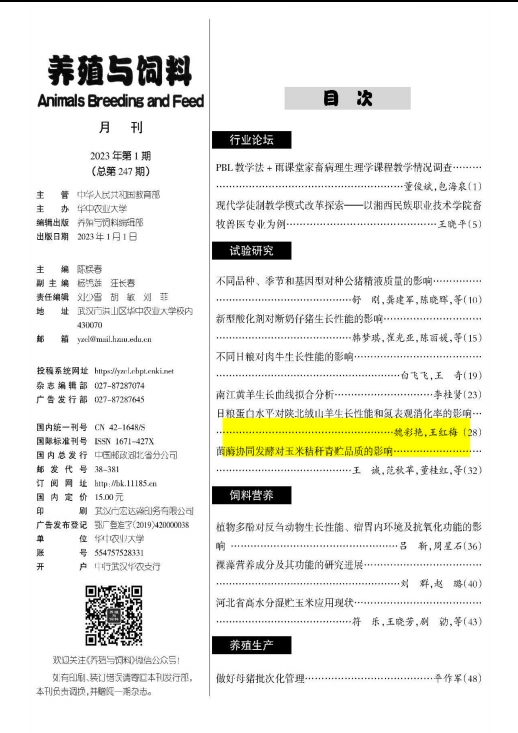 健源生物發表在《養殖與飼料》的論文入選2023年度湖北省科技期刊百篇優秀論文