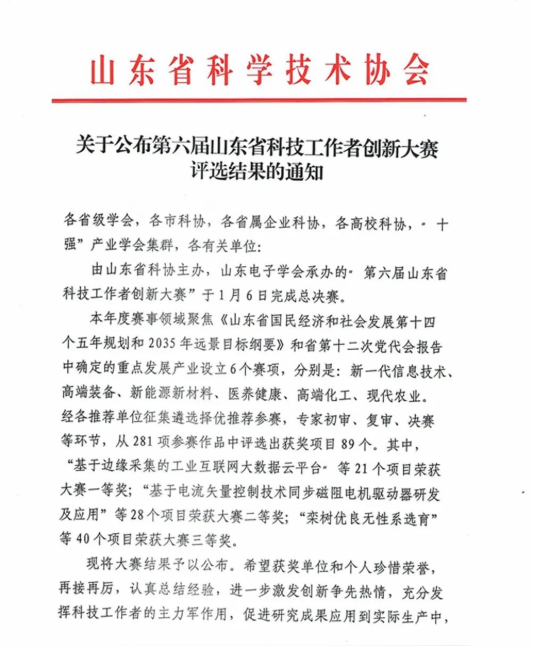 由山東省科學技術協會主辦,山東電子學會承辦的"第六屆山東省科技工作者創新大賽”1月6日完成總決...