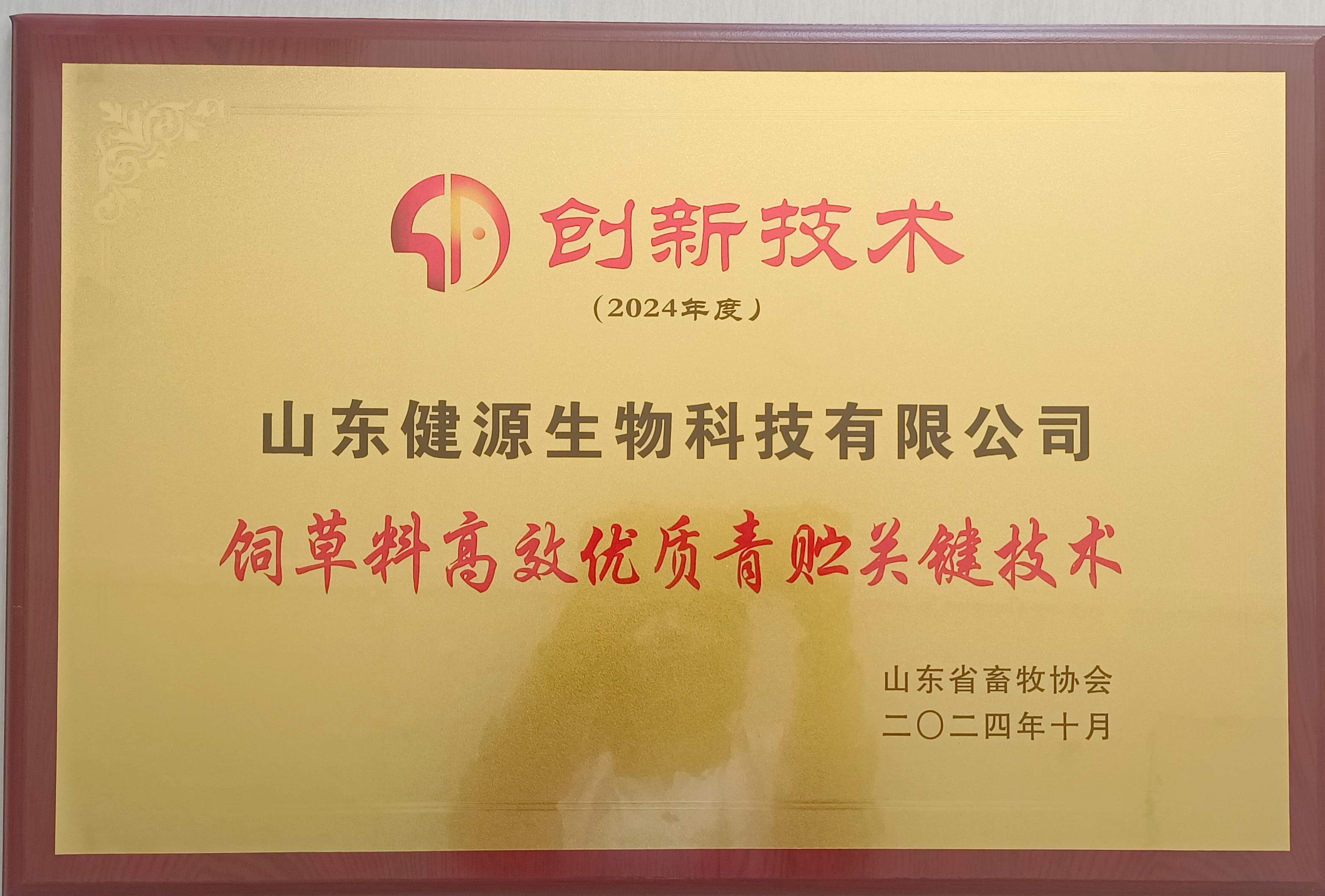 2024-10-28 熱烈祝賀健源生物榮獲2024年度山東省畜牧協會“創新技術”獎