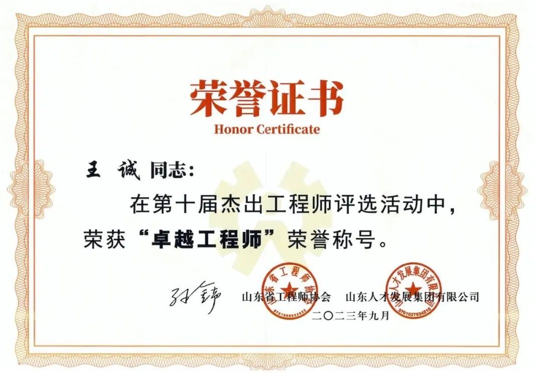 2024-1-22 董事長王誠被評為山東省科技創新獎先進個人