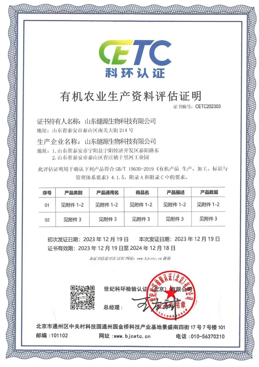 喜報 健源生物高活性生物系列產品通過“有機農業生產資料評估證明”認證 2023年12月,健...