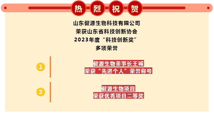 近日,山東省企業科技創新協會公布了《關于公示2023年度科技創新獎評審結果的決定》,山東健源生物...