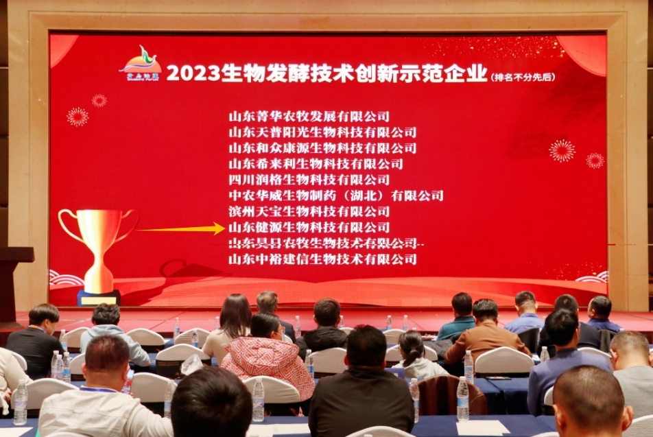 2023-12-13 健源生物榮獲“2023年生物發(fā)酵技術(shù)創(chuàng)新示范企業(yè)”稱號