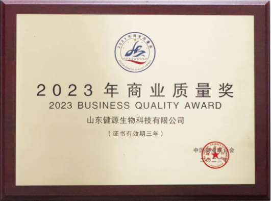 2023-8-1 山東健源生物榮獲“2023年商業質量獎”