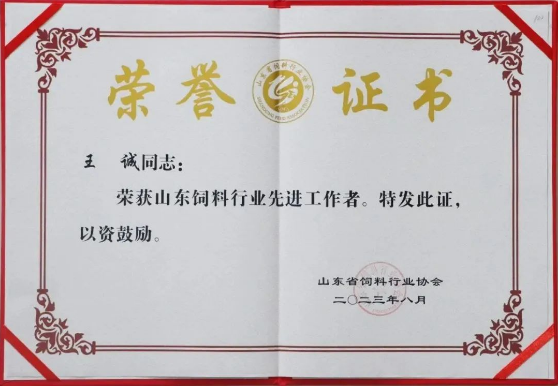 2023-9-2 山東健源生物董事長王誠榮獲2023山東飼料行業先進工作者
