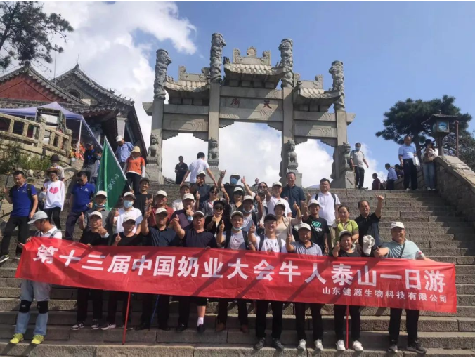 2022年9月6日,在第十三屆奶業(yè)大會(huì)、2022奶業(yè)D20峰會(huì)暨2022奶業(yè)展覽會(huì)期間,山東健源生物科技有限公司為感恩回饋各地牛人朋友對(duì)公司的支持和信任,公司精心安排了登泰山活動(dòng),登高望遠(yuǎn),為奶業(yè)加油!