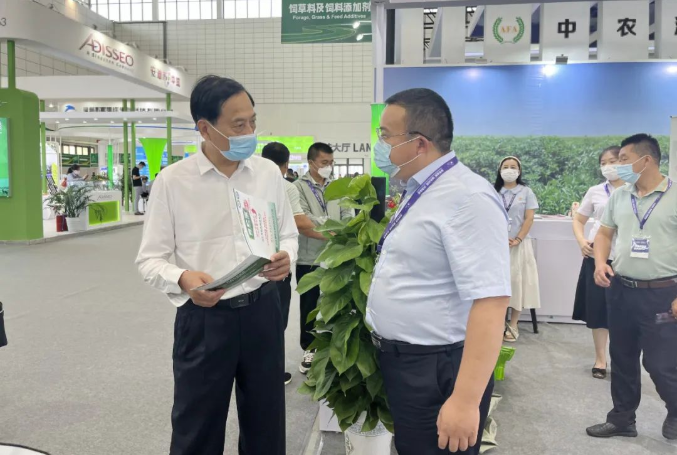 奶業協會戰略發展工作委員會名譽副主任陳萌山蒞臨山東健源生物展位參觀