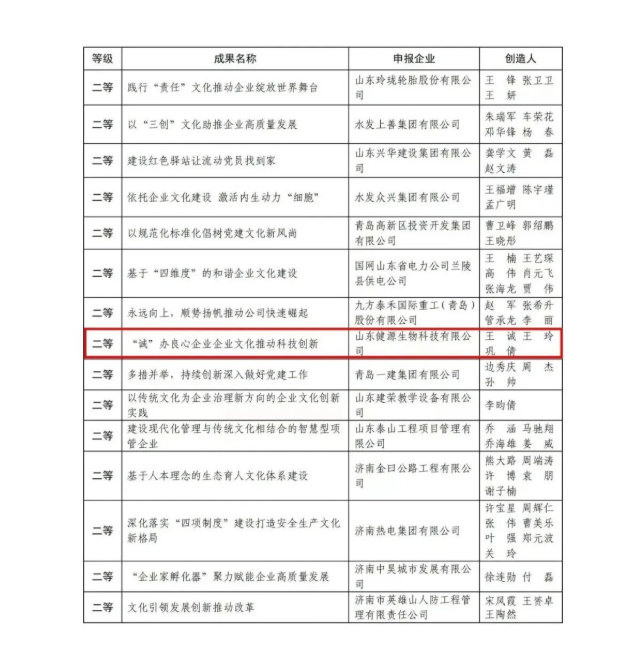 健源生物榮獲第二屆山東省企業文化優秀成果二等獎
